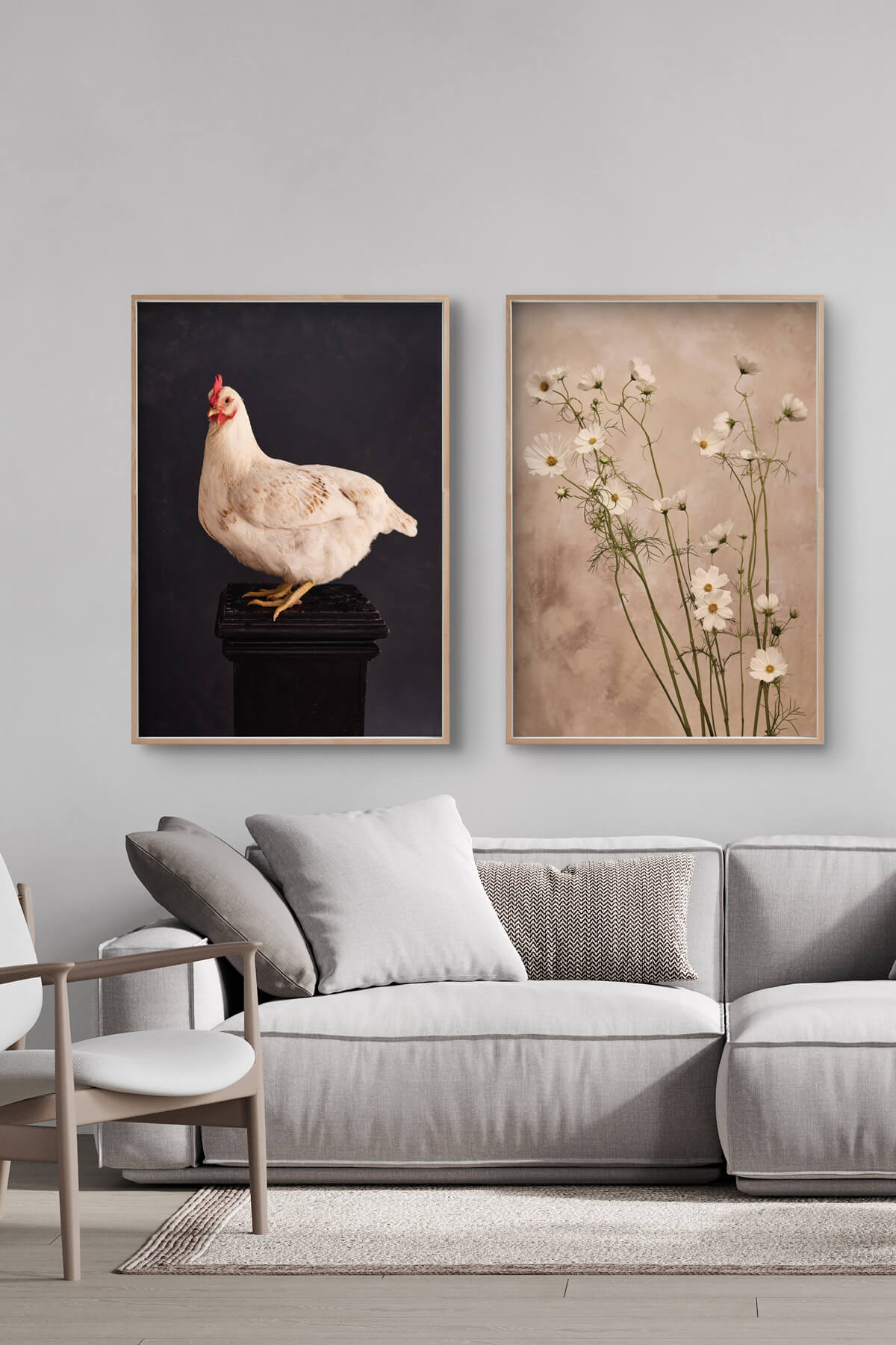All botanicals: Mix hydrangea prints, peony prints, and wildflower prints for a lush, garden-inspired wall. Add a large format prints as your hero piece.